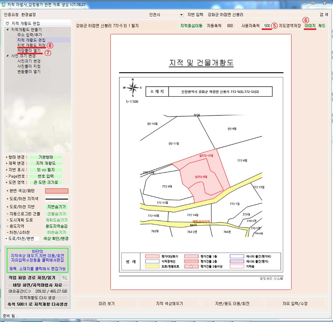 4. 좌측 지적개황도 편집을 클릭해서 지적 개황도를 생성 해 봅니다.