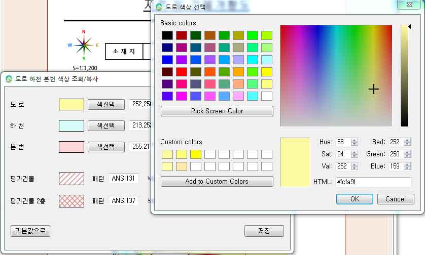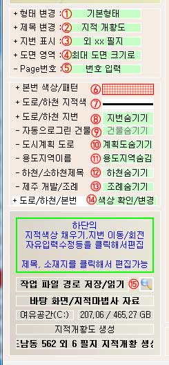 14. 도로/하천/본번 : 도로나 하천,본번의 칠하기 색을 선택.