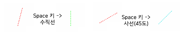 <Space> 키를 누르면 현재 직선의 각도에 따라 수평선,수직선,사선(45도) 으로 끝점 이동