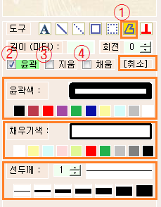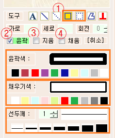 참조: 윤곽,지움,채움은 사각형 그리기와 동일