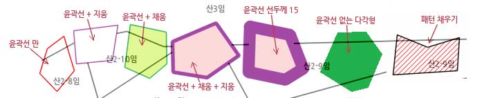 3. 지움 : 다각형내에 지적선이나 색상이 있다면 지움(지번제외)