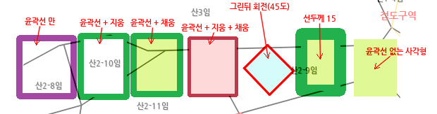 3. 지움 : 사각형내에 지적선이나 색상이 있다면 지움(지번제외)